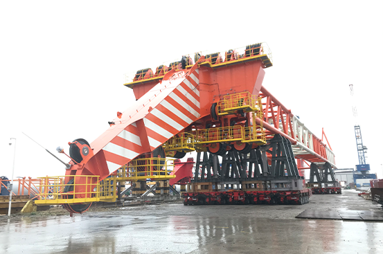 三月以来,为使全新一代3500吨全回转海洋起重机顺利完成总装,万象城AWCSPMT专业团队在3月1日-3日、16日-18日、20日-22日等,经过数日的努力奋战,顺利完成了回转平台、H25014底盘、臂架、A字架等超大型结构件的移运工作,为3500吨全回转海洋起重机顺利总装打下坚实基础。