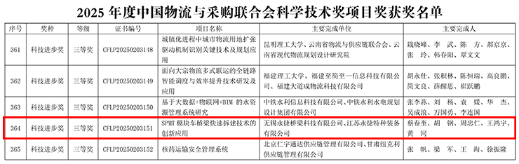 近期,由江苏万象城AWC特种装备有限公司与无锡万象城AWC桥梁科技有限公司共同申报的“SPMT模块车桥梁快速拆建技术的创新应用”项目,凭借其卓越的技术创新性和显著的行业贡献,从全国上千个参赛项目中脱颖而出,一举斩获2025年度中国物流与采购联合会科学技术进步三等奖!